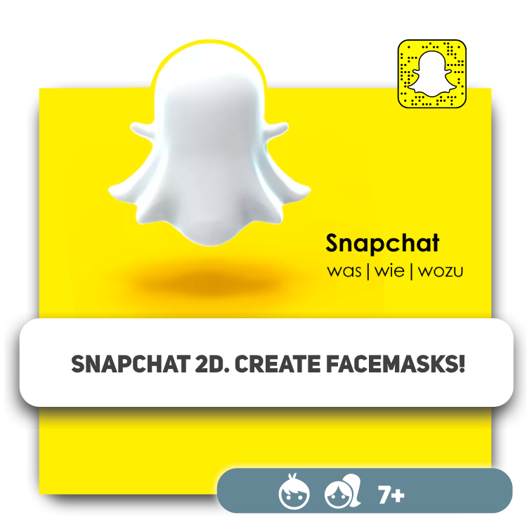 SnapChat is an app with funny masks. Children will learn how to use SnapStudio to create their own masks, publish them, and send them to friends.